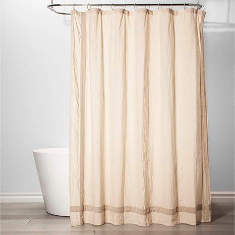 Amazon Com Threshold Solid With Velvet Shower Curtain Chalk Beige Home Kitchen